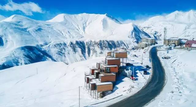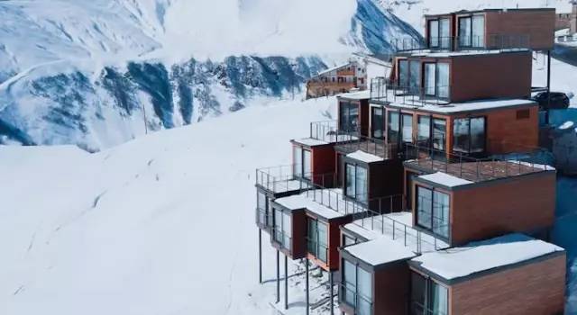 最出名的是一家用集装箱改造而成的特色酒店——Quadrum创意酒店,尤其是冬天下雪的时候能够360°无死角感受连绵起伏的山峦和令人叹为观止的冰封雪景,平常也只需要400多RMB就可以入住。
