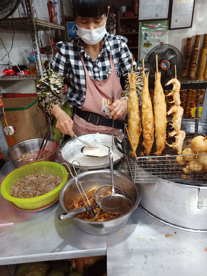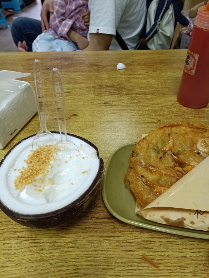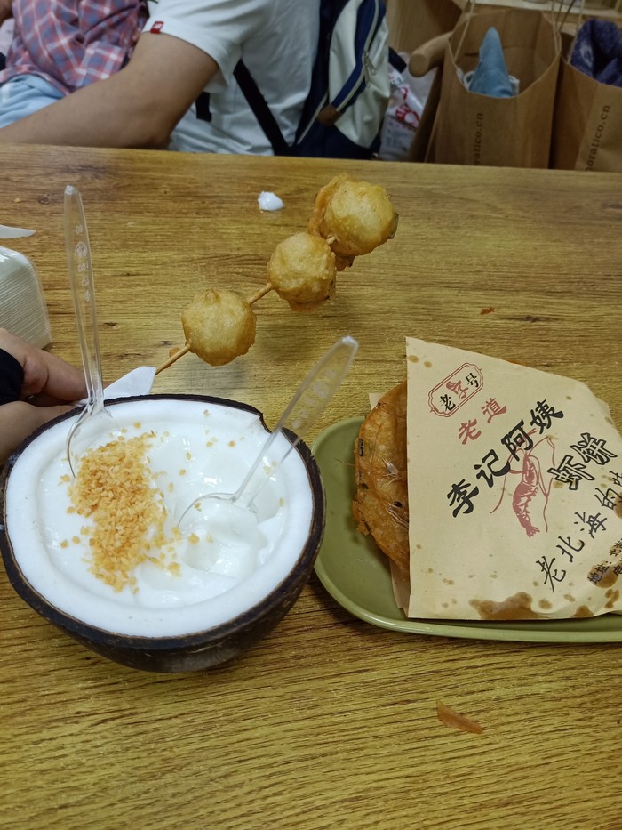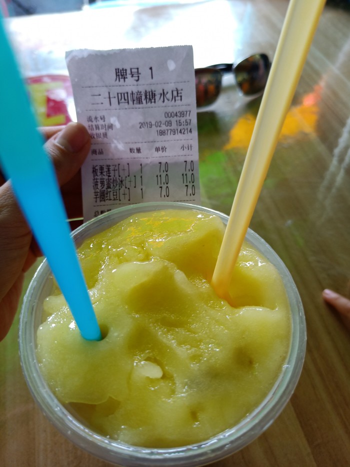 放下行李,休息了下,在民宿旁边的青旅租了个共享电动车(前面两小时是15块一小时,后面就5块一小时),直奔侨港风情街,找到美女司机推荐的24栋糖水,好多人排队,不过确实好吃,板栗莲子比较好吃,炒冰很细腻
