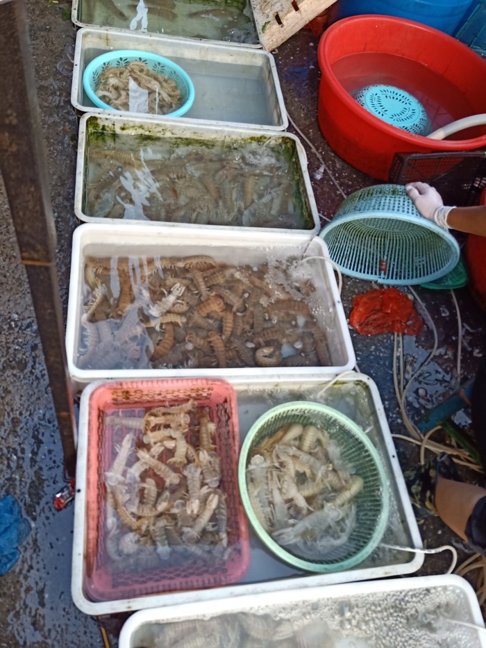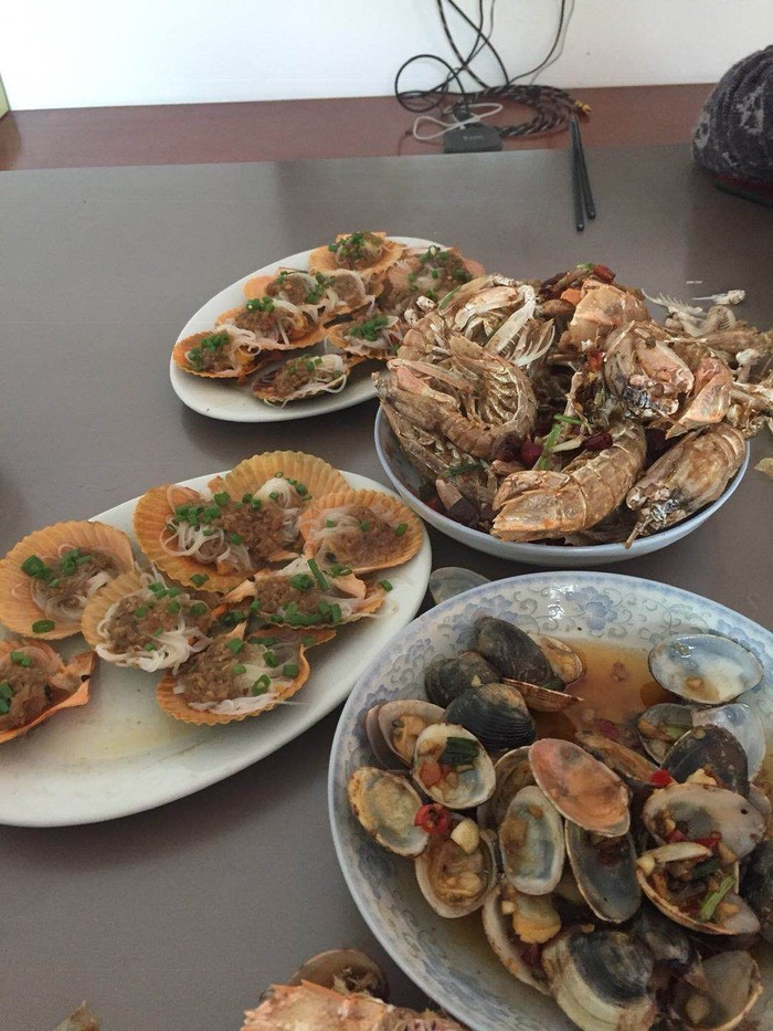 兜完风,上来后就找渔民买了皮皮虾,这边还是建议大家去菜场买,价格差不多,但是菜场称有保证!玩完回去菜场买了石斑鱼,扇贝,螺,回民宿让老板加工