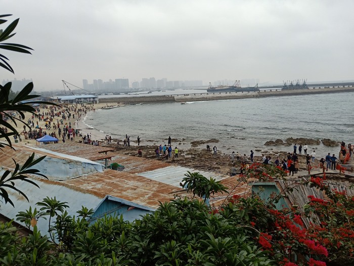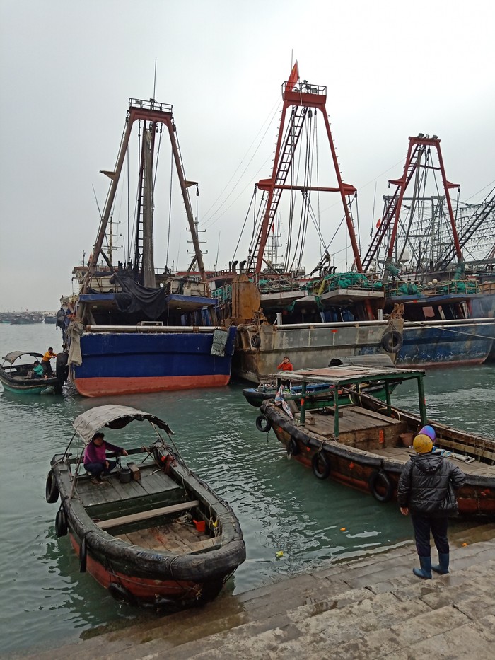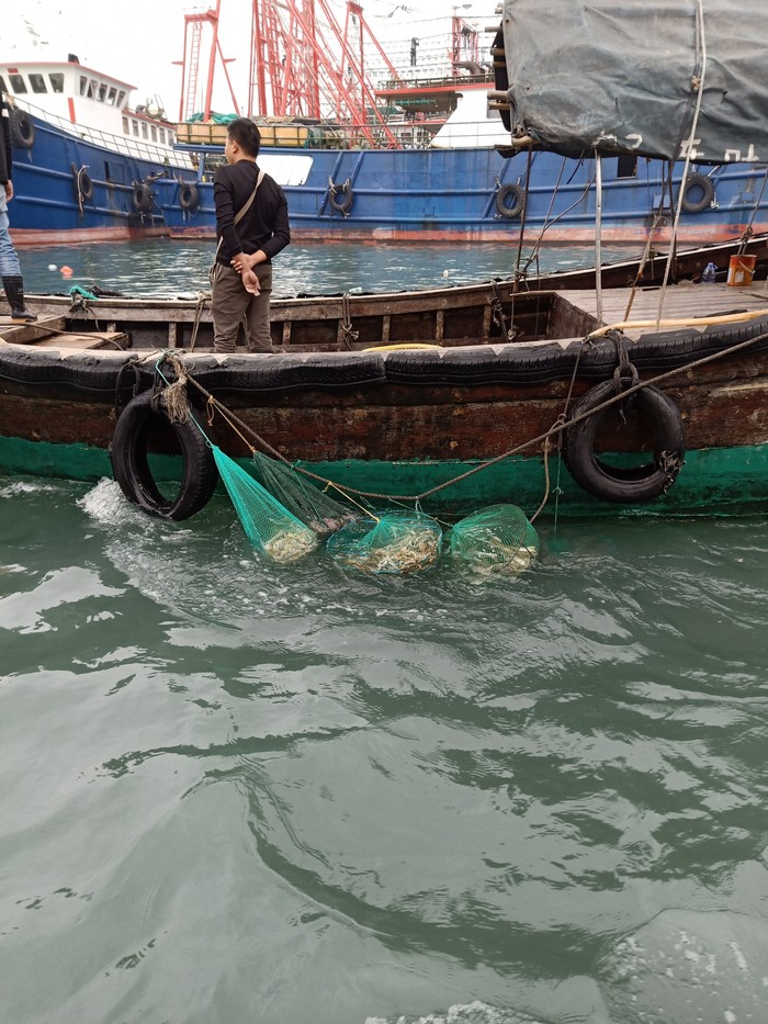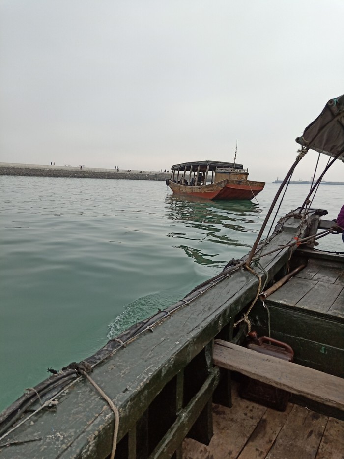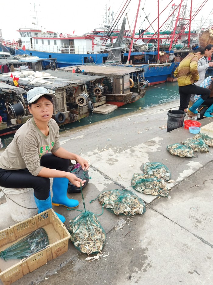 码头上都是卖这种小迷你螃蟹的,叫价20一袋,可以帮忙在后面的小船上面加工熟,不过这么小的螃蟹没有肉,就没有买!在码头边找了个小渔船让别人把我们载着在海上兜一圈,20一位