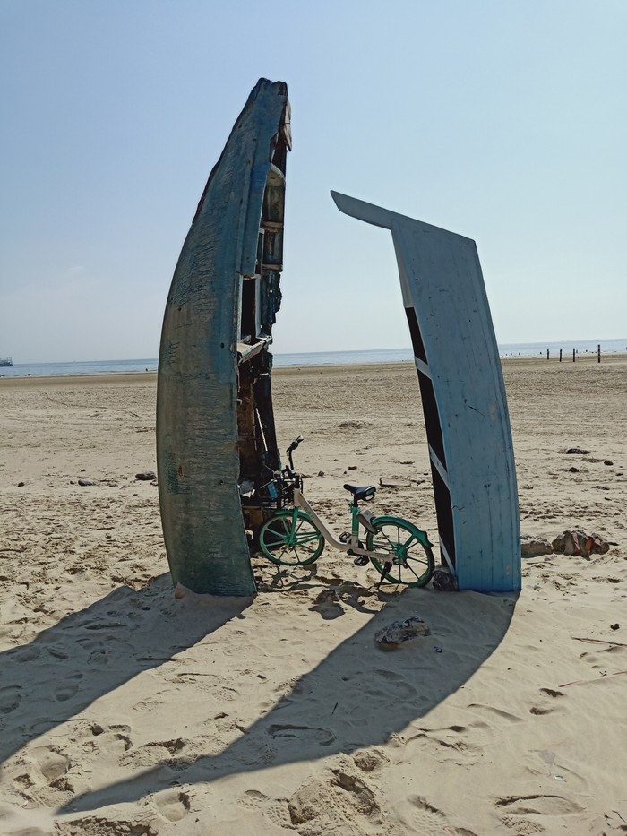 13号--早上吃完早餐,睡个回笼觉,中午吃完饭,孩子吵着要去玩沙子,就直奔海边了,在侨港海滩发现一个适合拍照的地方