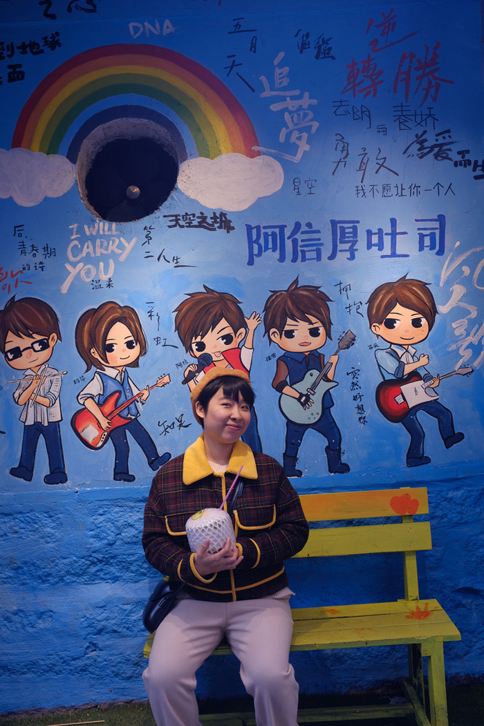 艺术西区很适合拍照,对面有很多小店,上去二楼还可以站在几个高石块上,和两栋海飞丝大楼拍照。