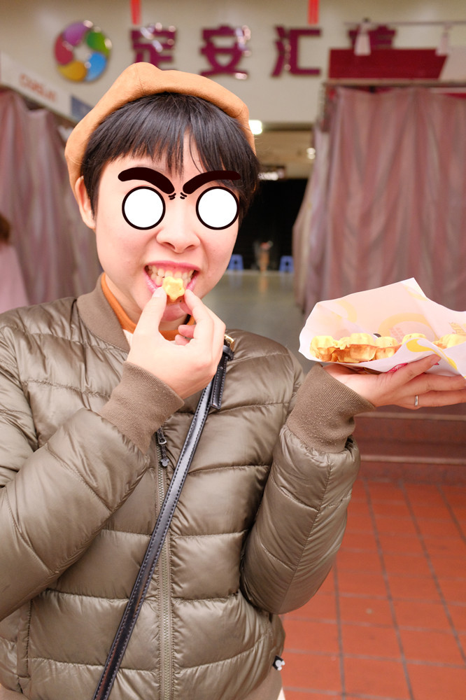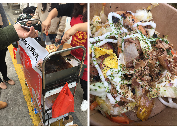公交站旁路遇一个小姐姐,在做梅花小鸡蛋仔。这个也很好吃,不会太甜腻,奶味很足,蛋浆超级香。