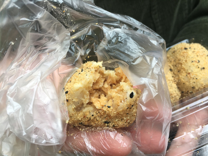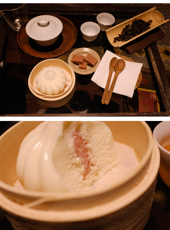 这里主打喝茶和小茶点,我们去得比较晚剩下只有这个了,像一个包子,其实中间是酸奶雪糕,酸酸甜甜的口感,中间橙色类似果冻,融化之后会有q弹的口感