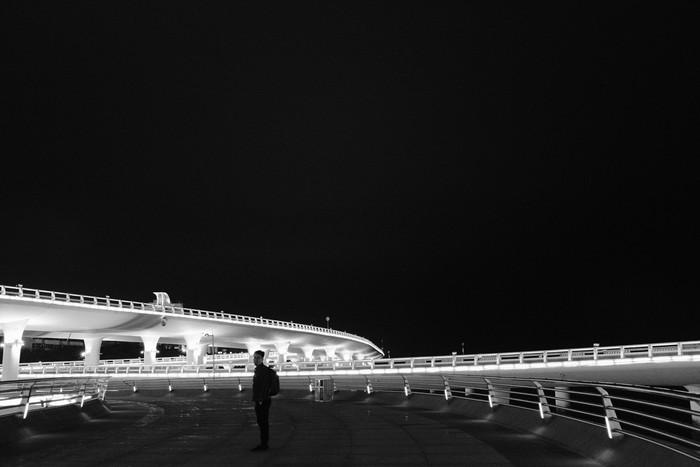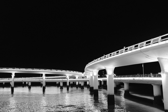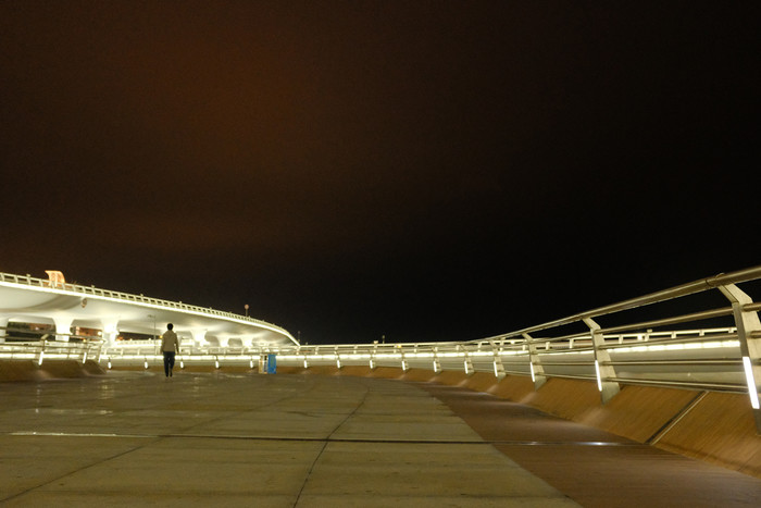 夜晚可以去世茂外围的观景桥逛逛,人都在世茂逛街,外面人很少,灯光交错,非常浪漫。