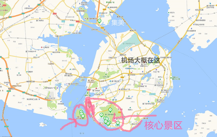 厦门的主要景点都集中在岛上和中下部位。