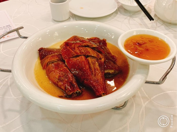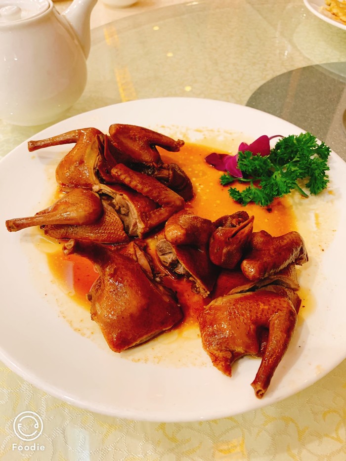 简单说下吃完的感觉,在魔都待久了看到顺德这边菜的分量着实被惊到了,菜的味道挺清淡的,乳鸽不像上海茶餐厅那种脆脆的感觉,不过味道也很好,拼盘里的烧肉老爸老妈一致给了好评,皮烤的脆脆的,金钱肚里的豆腐吸了满满的卤水汁很好吃,茶水位是每人5元,一共付款406元,性价比一般般吧