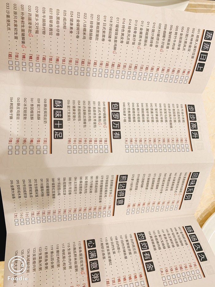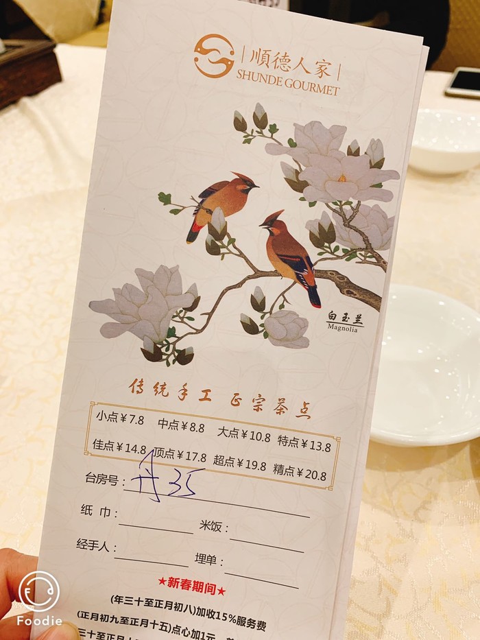 来顺德这边怎么能不喝早茶呢,因为昨天晚上没吃到点心,今天特地定了闹铃起早去喝顺德人家早茶,和老爸老妈8点半就到了,到的时候人还不多,找了个大厅中央的位置,就看到桌上的点菜单