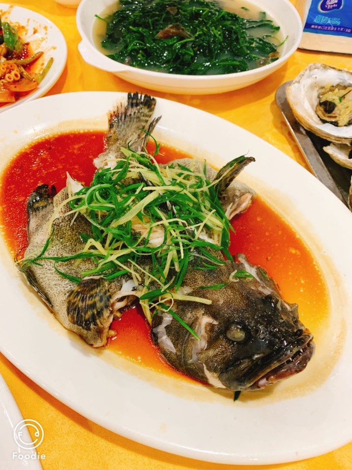 老爸点了一条清蒸老虎斑,148元一条,鱼肉很鲜