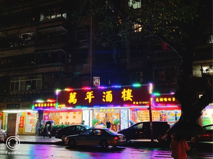 晚上带着老爸老妈出来觅食,特别想吃烧鹅,纠结了好久去哪家店,老爸说随便走走看看吧,结果在酒店不远的地方老爸找到了万年酒楼,看了介绍是一家粤菜老店,如果晚到一会可能就要排队了,果断进去了