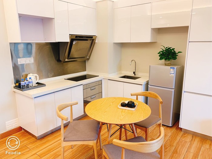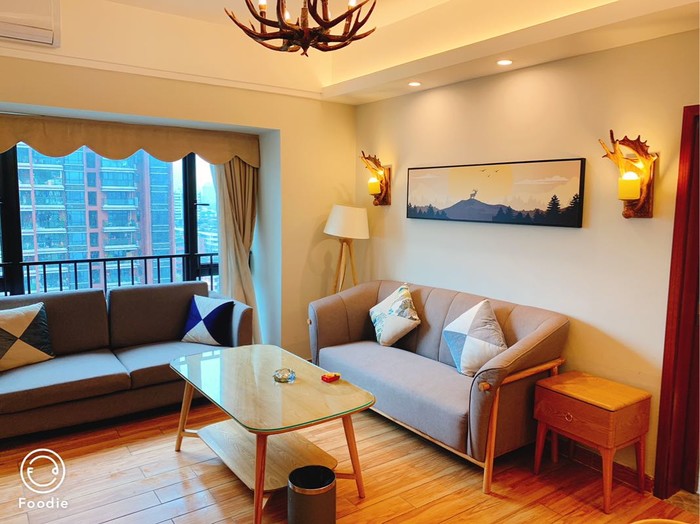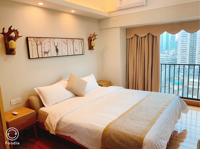 提醒下过来办理入住的小伙伴,入住办理是在入住大楼对面一楼,门口写着星伦国际,还是很好认的,楼主原本预定的是双床房,没想到运气很好,帮忙办理入住的小姐姐看我是带着爸妈来玩入住,给我们免费升级了一室一厅套房,说空间比较大,小姐姐人超好超nice,打call,房间位于16楼,进楼和电梯都需要刷卡,房间是真的很漂亮,很温馨,楼主带爸妈出行,很喜欢选择公寓式酒店,和家的感觉比较像,冰箱,洗衣机,电磁炉一应俱全,顺带提一句公寓可以提供加床服务,听服务人员说节假高峰是150元加床费,平时是100元加床费,上图,为这种简单温馨风格打call