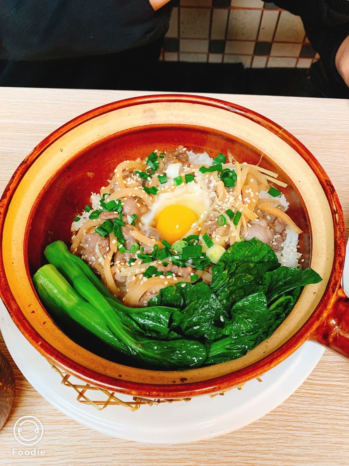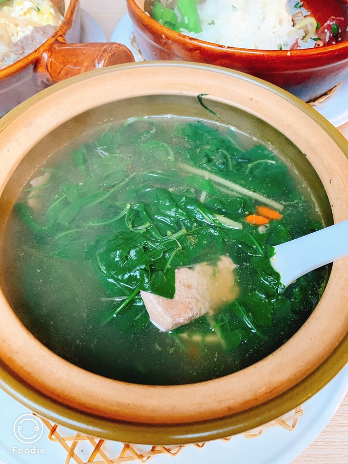 点了他们家的金牌腊味煲仔饭,冲菜牛肉加窝蛋煲仔饭,窝蛋是另加的2元,还有枸杞猪肝汤,一共68元,煲仔饭的分量很足,可以配上桌上的鲜酱油拌着一起吃,深深着迷广州这边的米饭,吃起来特别香