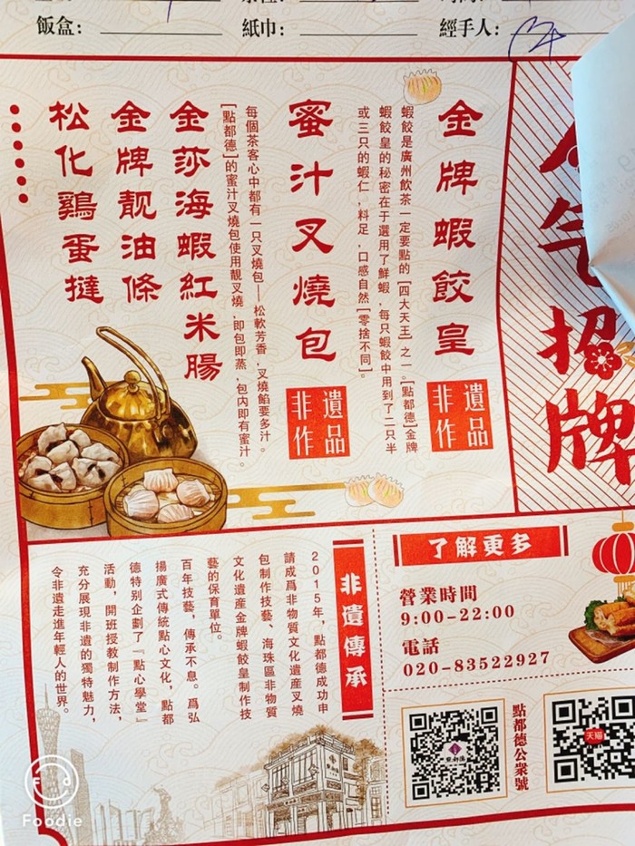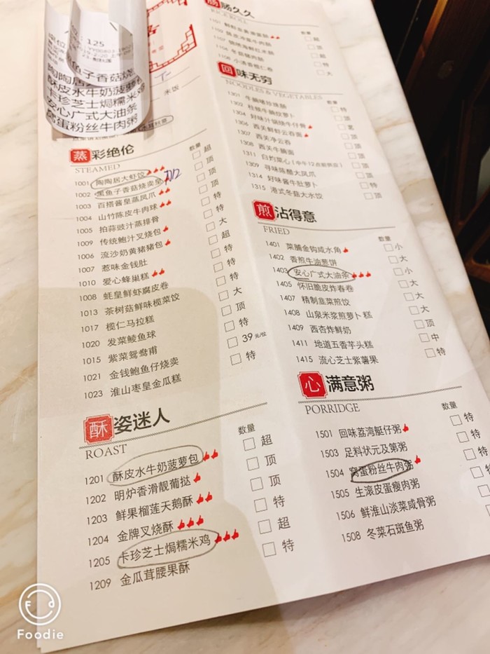菜单,推荐了虾饺皇,叉烧包等