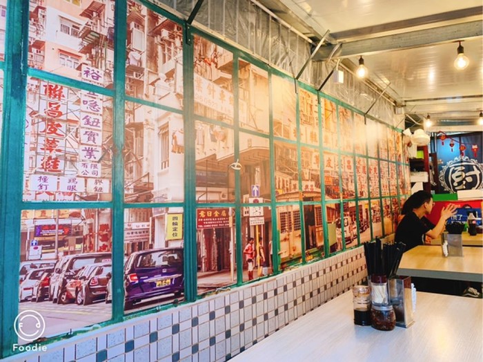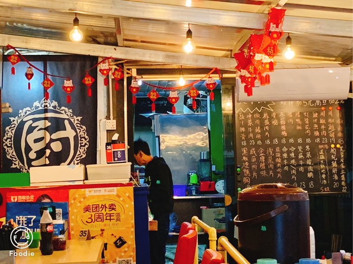 不起眼的外表,里面环境却很干净,简简单单的几张桌子,里面是厨房,墙上小黑板挂着手写价目表,挺温馨的