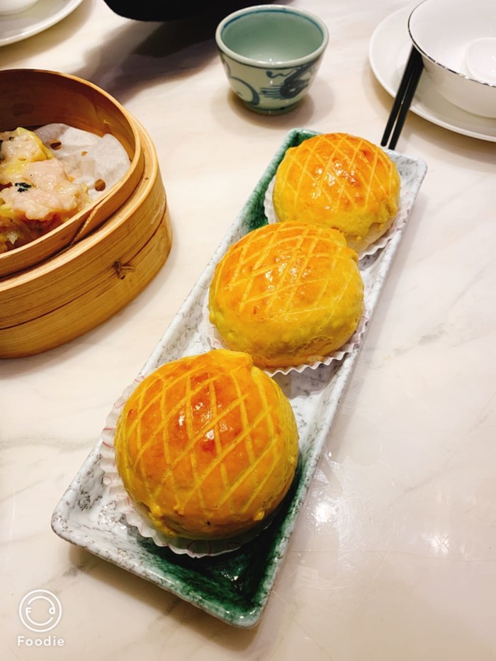酥皮水牛奶菠萝包,里面像是双皮奶的馅料,味道还不错