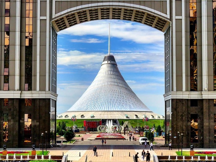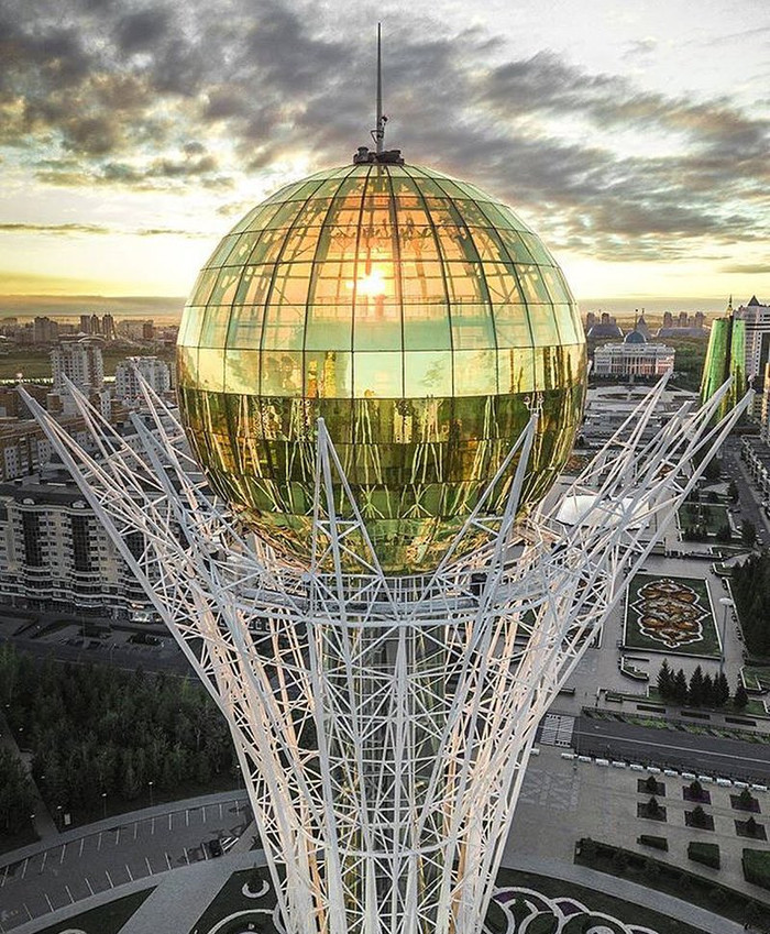 是这座城市的象征。这座纪念塔兼观景塔,设计灵感来自哈萨克族的神话故事。故事讲述了一棵神秘的生命之树和一只幸福的魔力鸟,这只鸟每年会在这棵树的树杈之间下一个蛋。