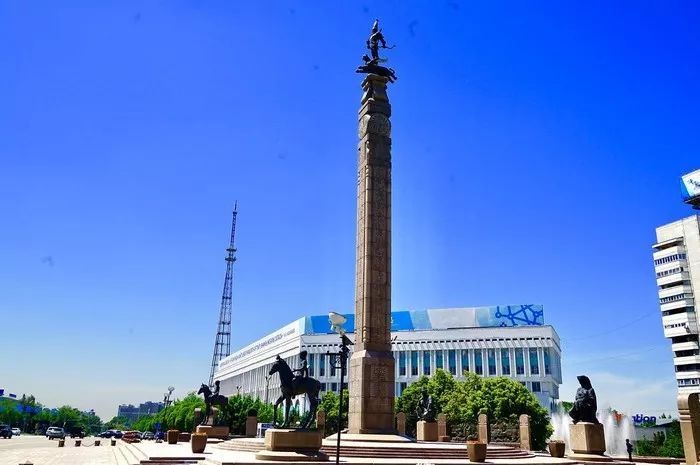 这个广场是苏联时期修建的,也是阿拉木图市内最大的广场。广场上最大的焦点是一座28米高的独立纪念碑。这座纪念碑高28米。顶端是一座金色武士的雕塑站在一只有翅膀的雪豹上面。这也是阿拉木图最具有代表性的地标之一。象征着哈萨克斯坦土地上坚强的国家政权。