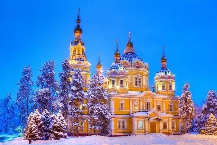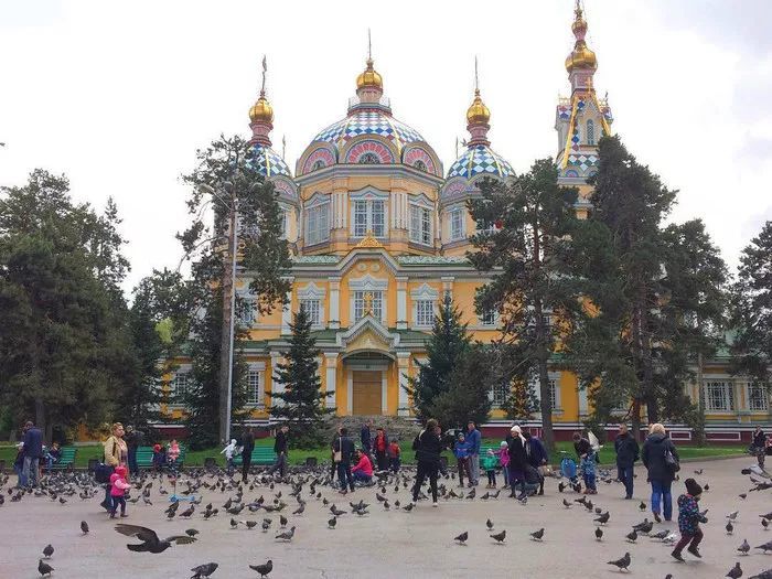 这是一座东正教教堂,据说是世界现存第二高木结构建筑,建筑物并没有用任何钉子建造,还奇迹般经历过1911年阿拉木图强烈地震后还幸存的建筑之一,也是阿拉木图沙皇时期少数幸存的建筑之一。
