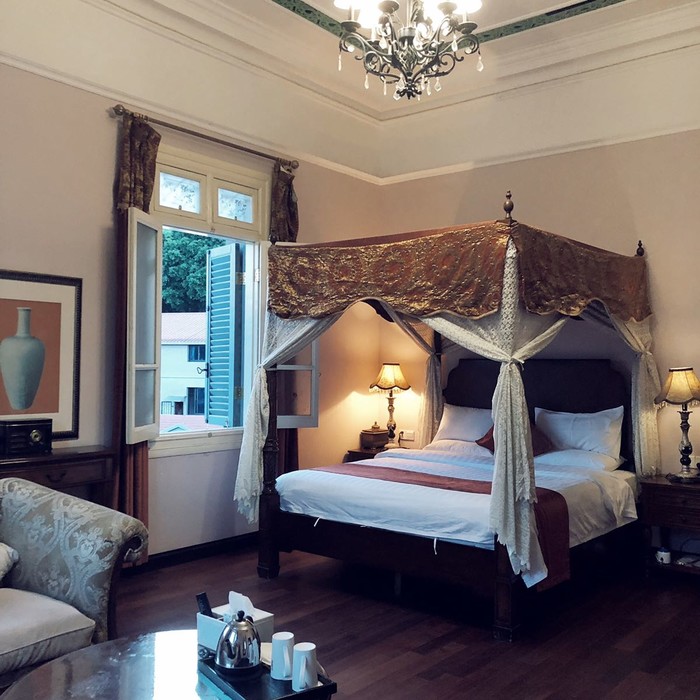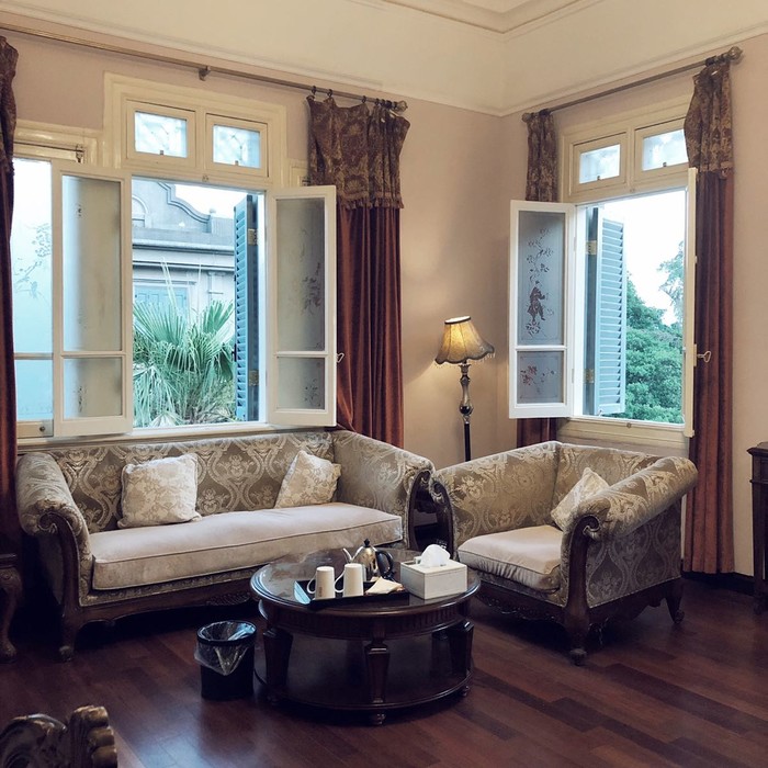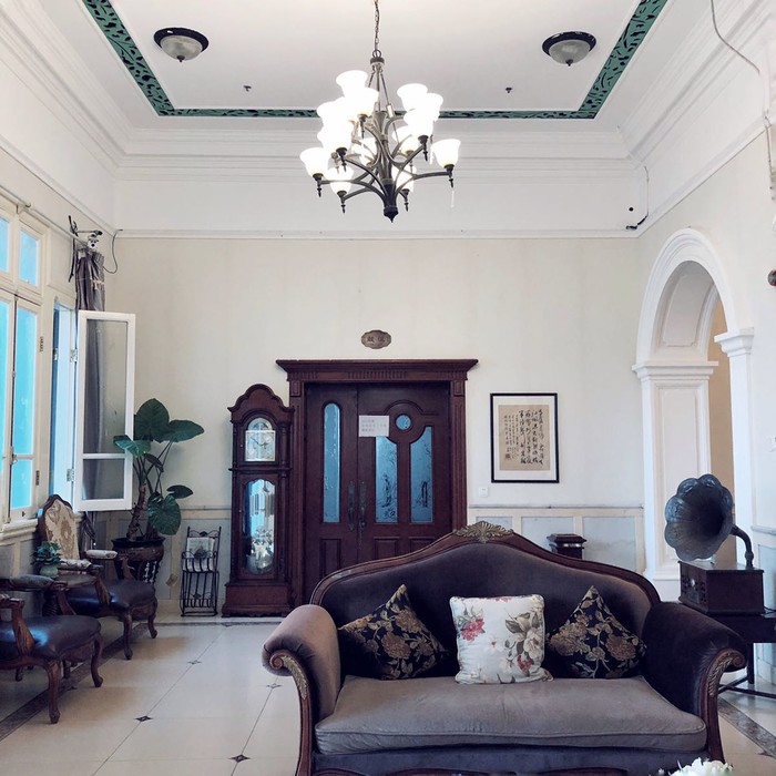 然后再说说房间吧 当你进去把所有窗户打开之后 你会发现 真的比酒店跟评论的照片美上一万倍 这无法用相机照片形容的美 我入住的那天天气也好美 蓝天白云的 打开窗户就是一幅活生生的油画 再配上一曲华尔兹 真的有一种回到民国时期的感觉 哈哈哈哈哈哈 感受到一番年代的味道 就让我深醉下来吧