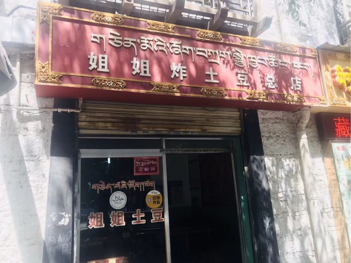 参观结束从布达拉宫背面下山。有点饿了,寻找又一家网红店,"姐姐炸土豆"。