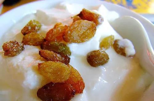 轻轻的扒开奶皮,软嫩粘稠的酸奶像豆腐脑一样散开,吃起来清甜可口。