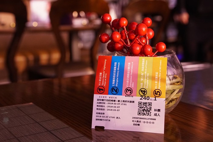 东方明珠广播电视塔的空中旋转餐厅坐落于东方明珠塔267米上球体