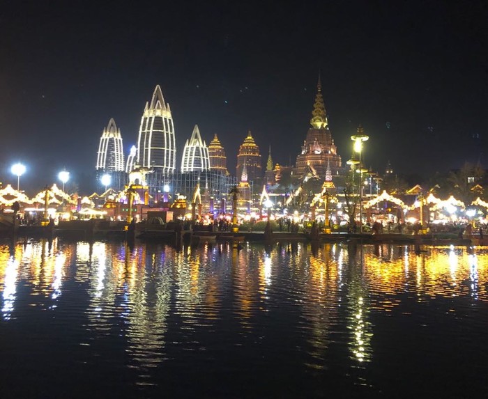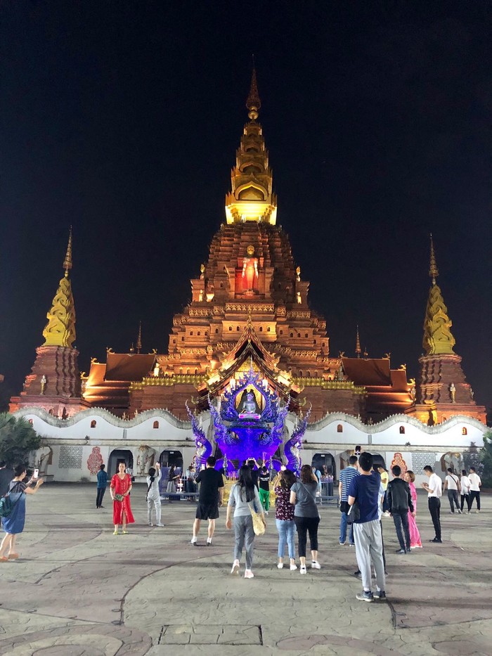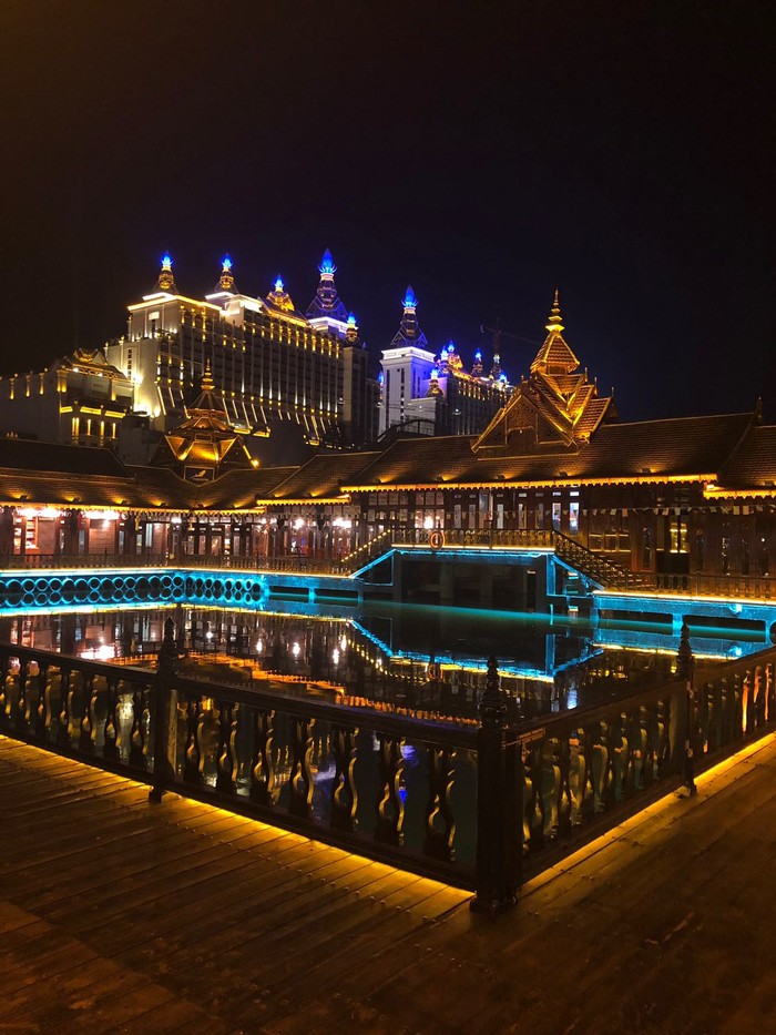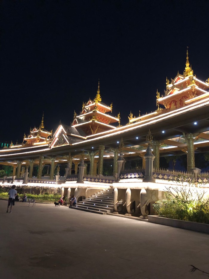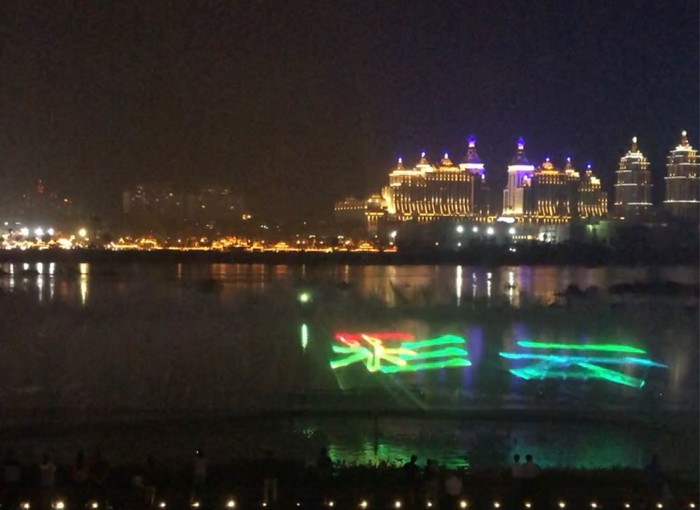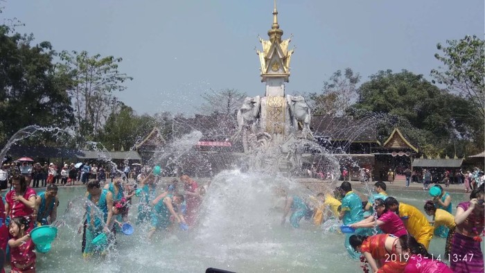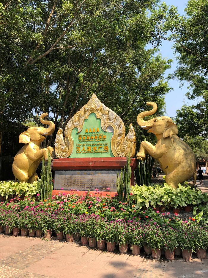 中心喷泉高达100米,配合激光效果,有佛、塔、傣楼、大象、孔雀等图案呈现,最让人感动的是,随着激光闪烁,呈现出"西双版纳欢迎您"、"彩云之南"的字样。真是太意外了,没想到能看到如此震撼的音乐喷泉。