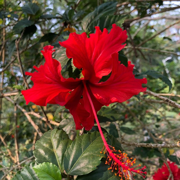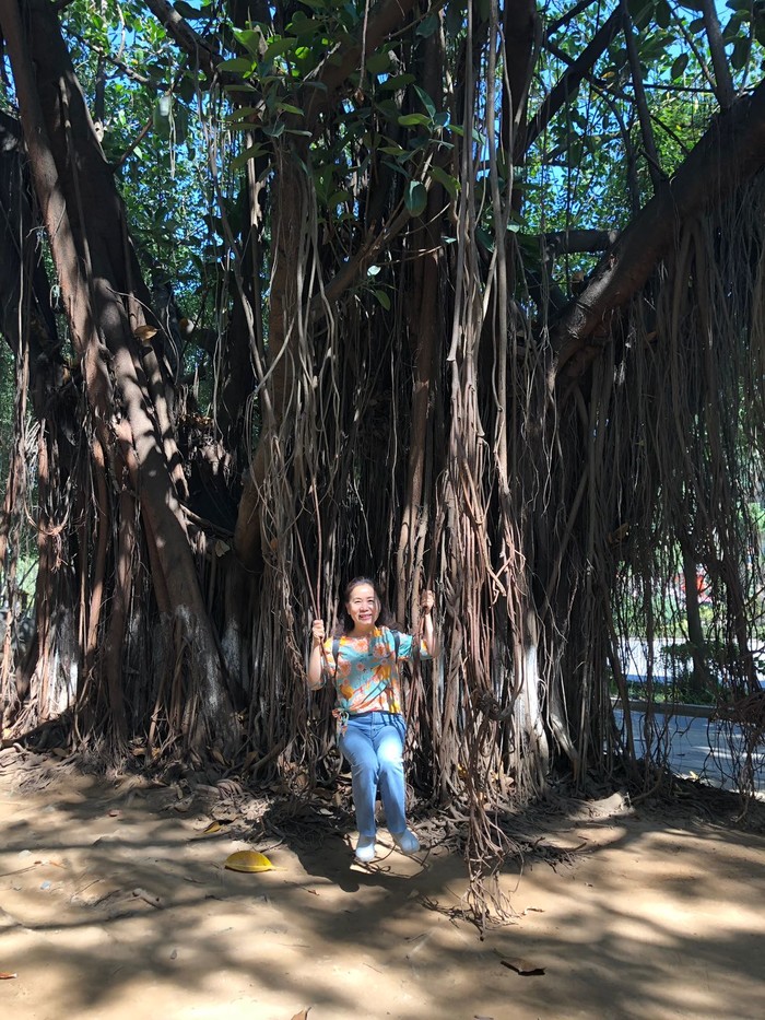 路边好大一颗树,有寄生根编织的秋千,坐上荡来晃去彷佛置身童年