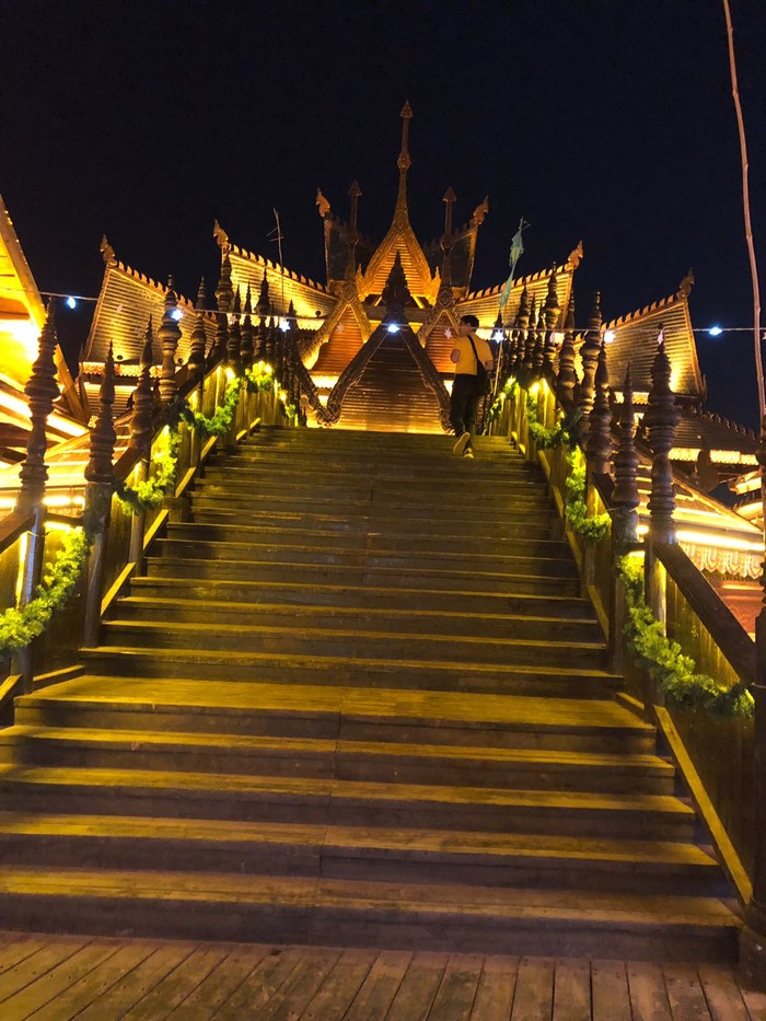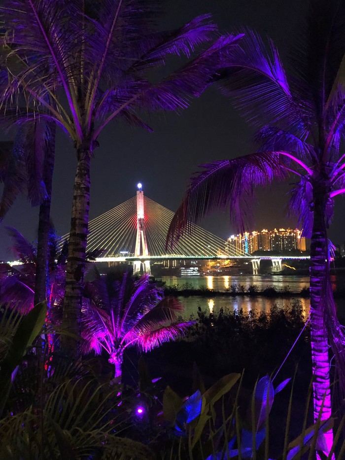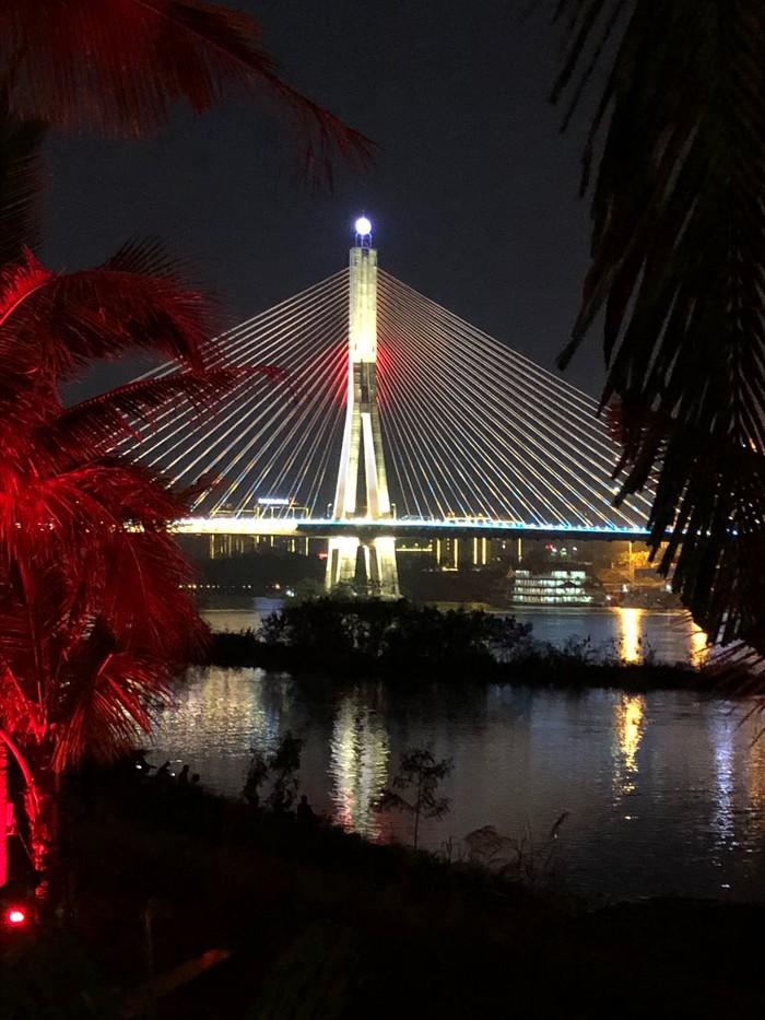 音乐喷泉只有20分钟,散场后,沿着江边散步,夜色下的 "西双版纳大桥",光彩夺目。