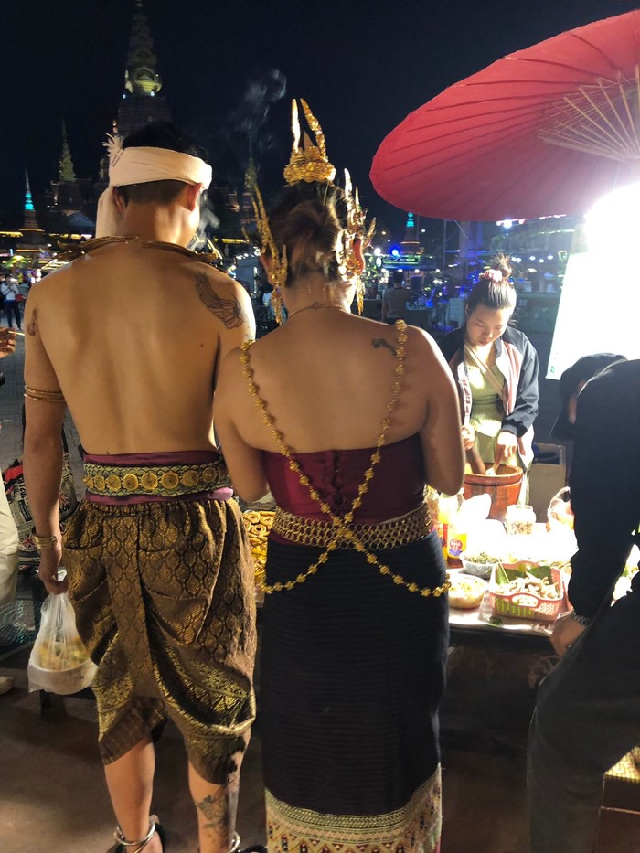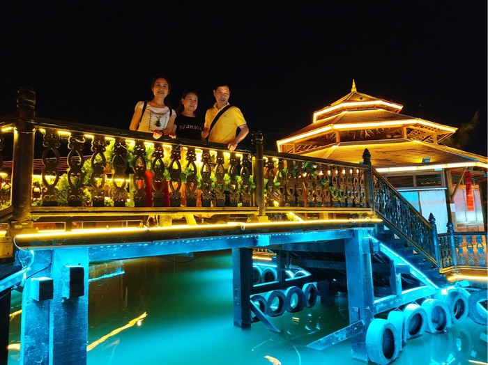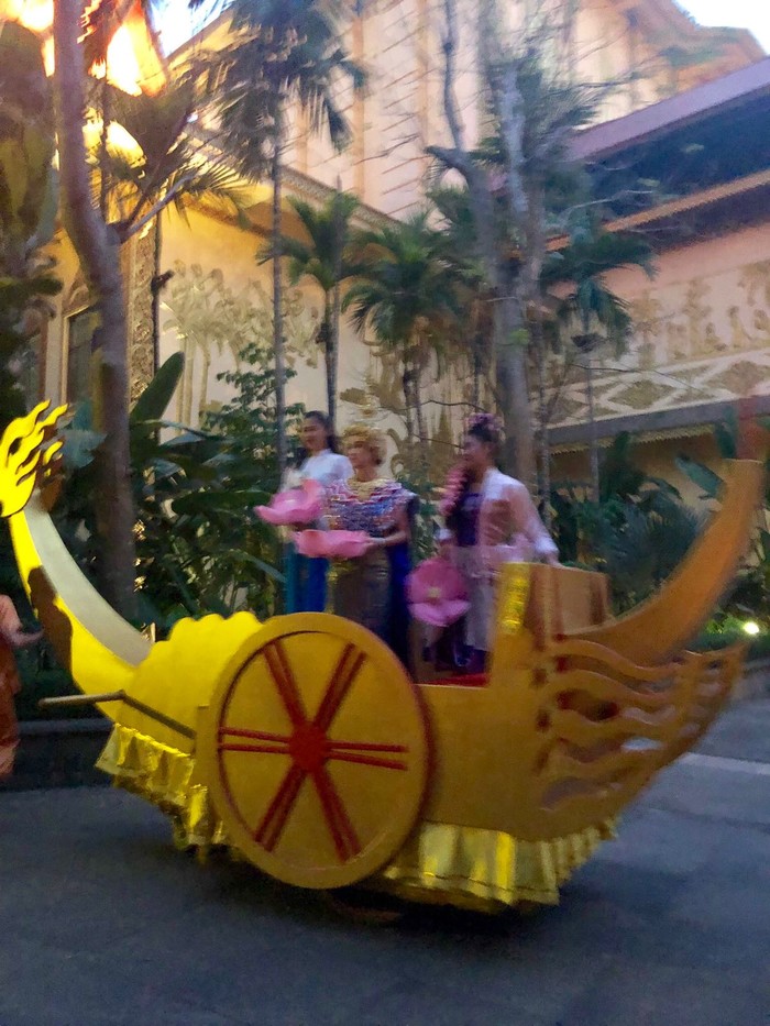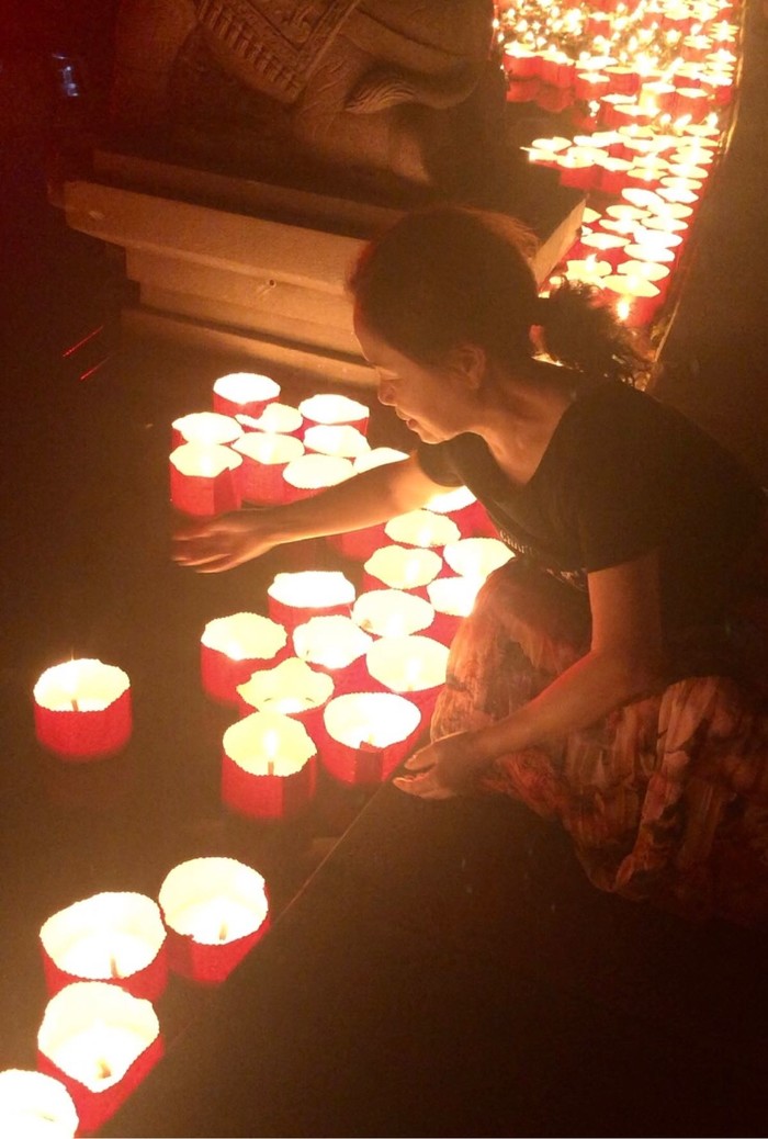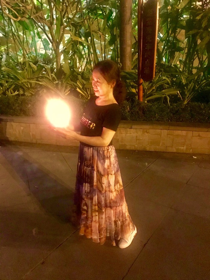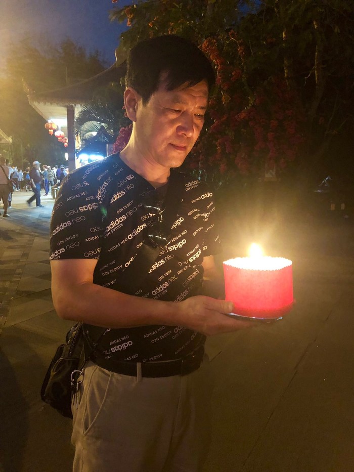 吃完饭,天色已经暗下来,看见彩车、看见许多人点亮水灯,捧在手心,点点烛光闪烁,像天空中的星星。我们也赶快行动起来。