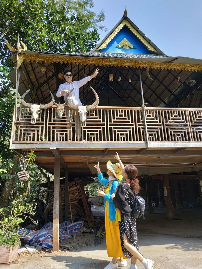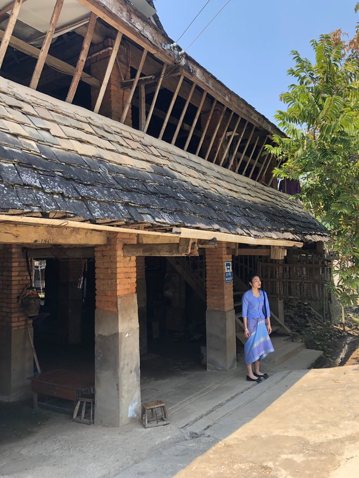 招手打车 "曼丢小寨",结果师傅把我们拉到一个土路小山坡上,有竹草房,也有砖瓦房,普普通通的原生态傣家。 这里是 "曼真淘隐" 不是网友推荐的 "曼丢小寨"。
