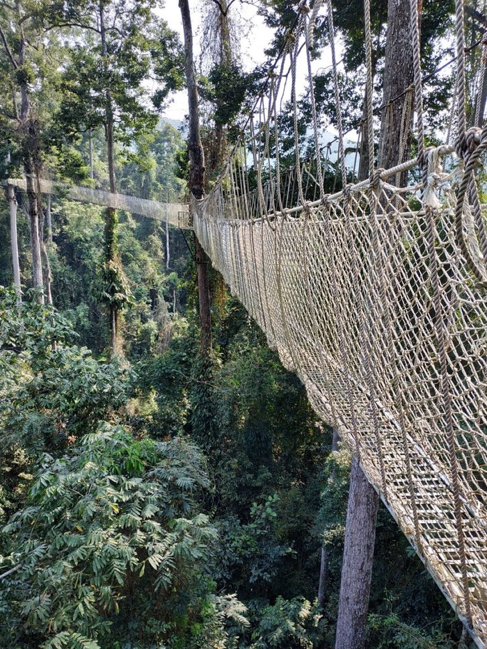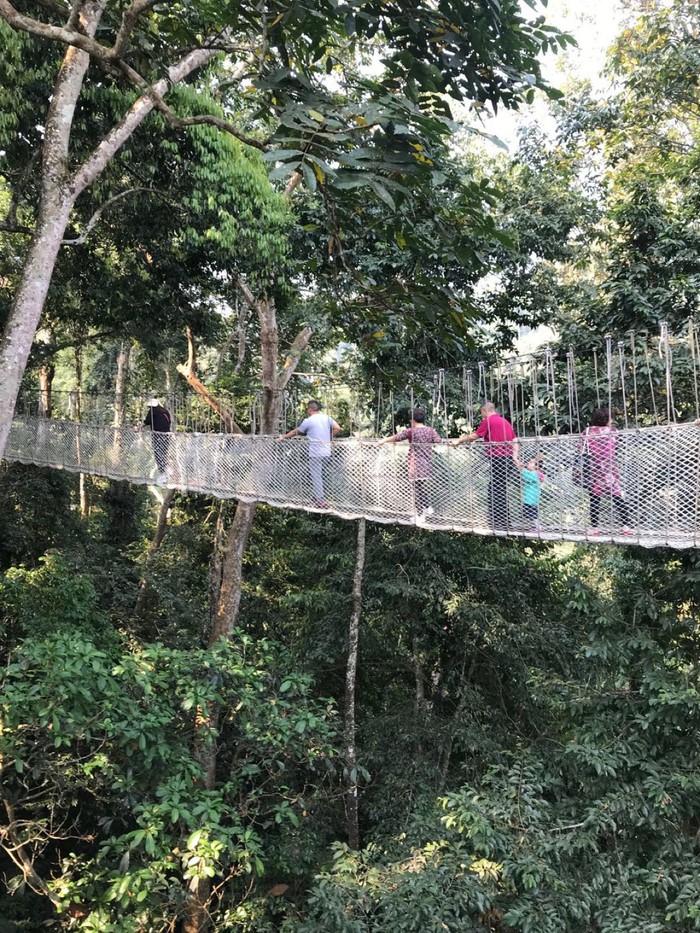到了景区,才知道什么是望天树,真的是一眼望不到树梢啊!上到 "空中走廊" 才体会到那种令人既惊又险的感觉。高空中,广阔的视野,可尽情地领略热带雨林的奇异风光。