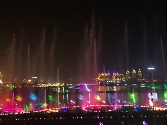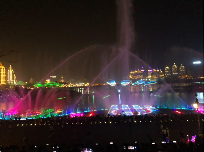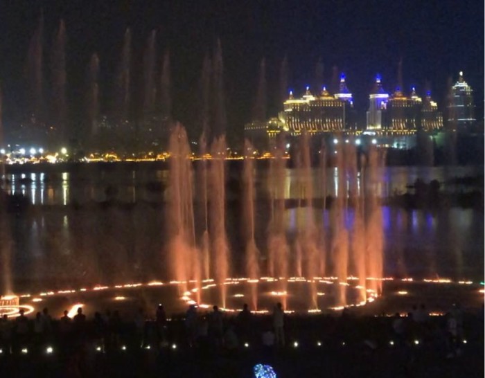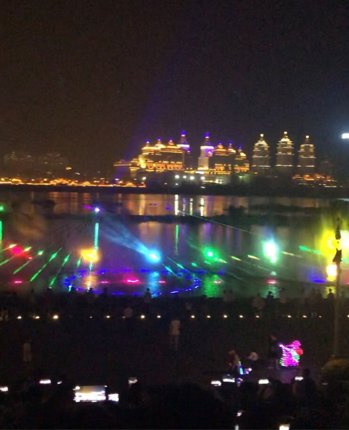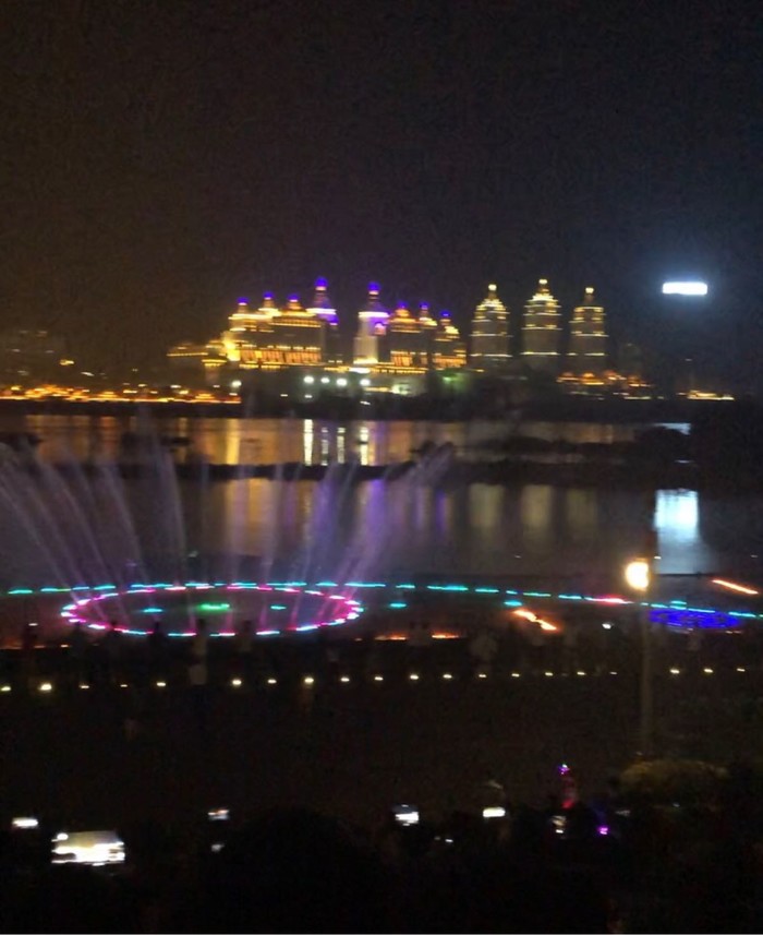 随着音乐节拍,光影变化,水柱不断变换舞姿,呈现各种水型,非常漂亮。