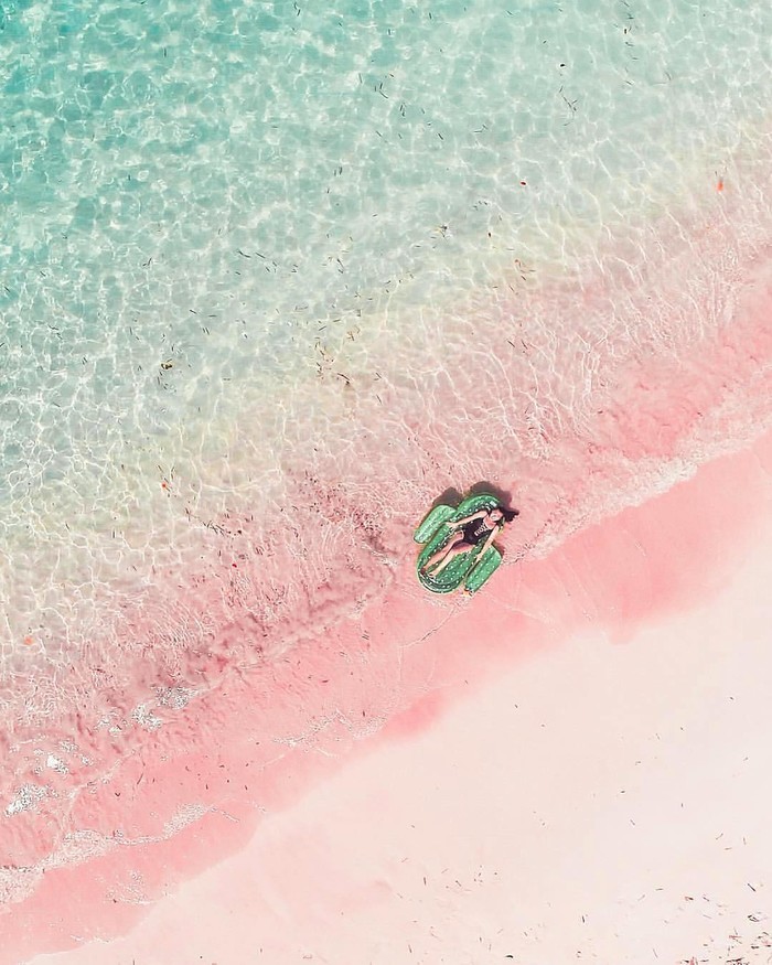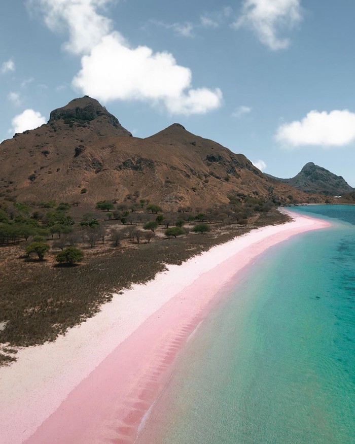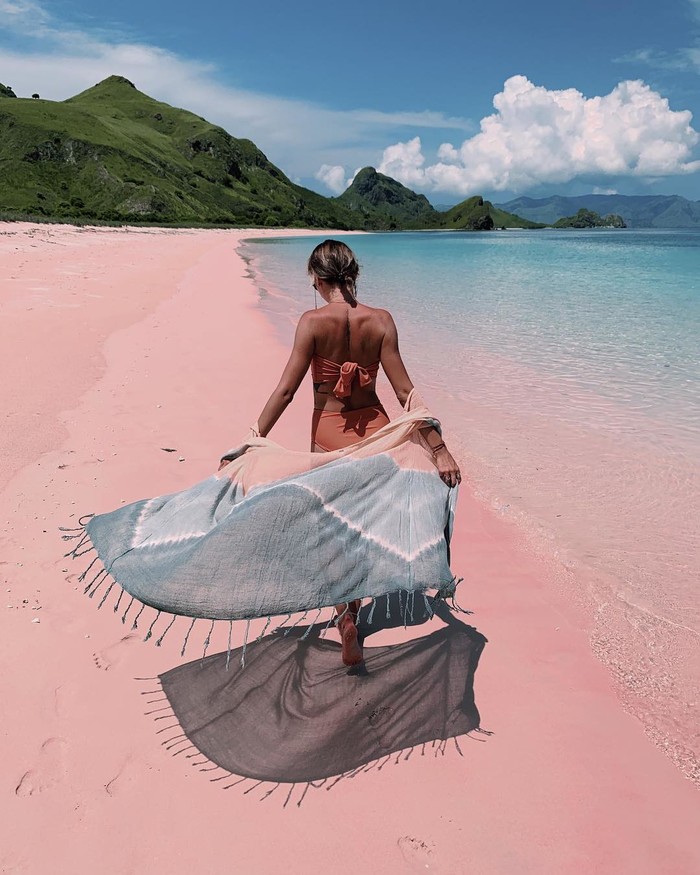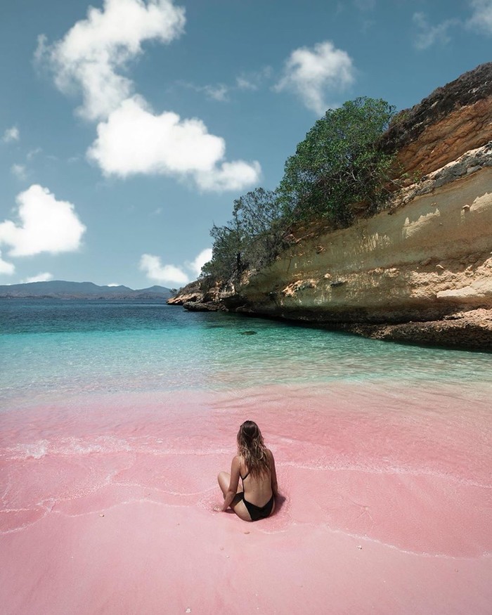 是什么造就这令人心驰神往的梦幻沙滩?正是印尼国宝——红珊瑚。海底大量的红色珊瑚被海水冲碎后变成细小的粉末,与岸上细白的沙子融为一体后,便形成了这最浪漫的粉红色沙滩。