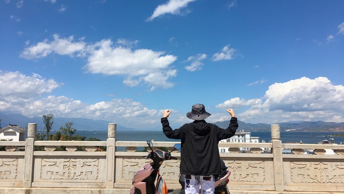 一早我们在下关租了个小电车 ,也不知道是不是旺季,租个小电车贵死了, 要押身份证的所以要记得带。一般路线是从下关到 大理 古城然后到 喜洲 古镇(左边路线)或者是右边路线到 双廊 (需要租个电力十足的电车),所以还是住在古城比较好。我们当时离洱海公园挺近的,就开着个车去了洱海公园 ,沿海的景色确实是挺美的,不过就真的只能看和拍拍拍而已!~我们找了半天没找到洱海公园的入口,后来问了个人给我们指路,我们才知道方向,开进去兜了半天也没啥看头,里面就有个猴园,无聊的要命,就一般的公园而已,后来兜了一圈我们就出来了,这也能当做一个景点我也是有点怀疑~~(持续失望中),不过这附近的天空很美,很适合拍照~~