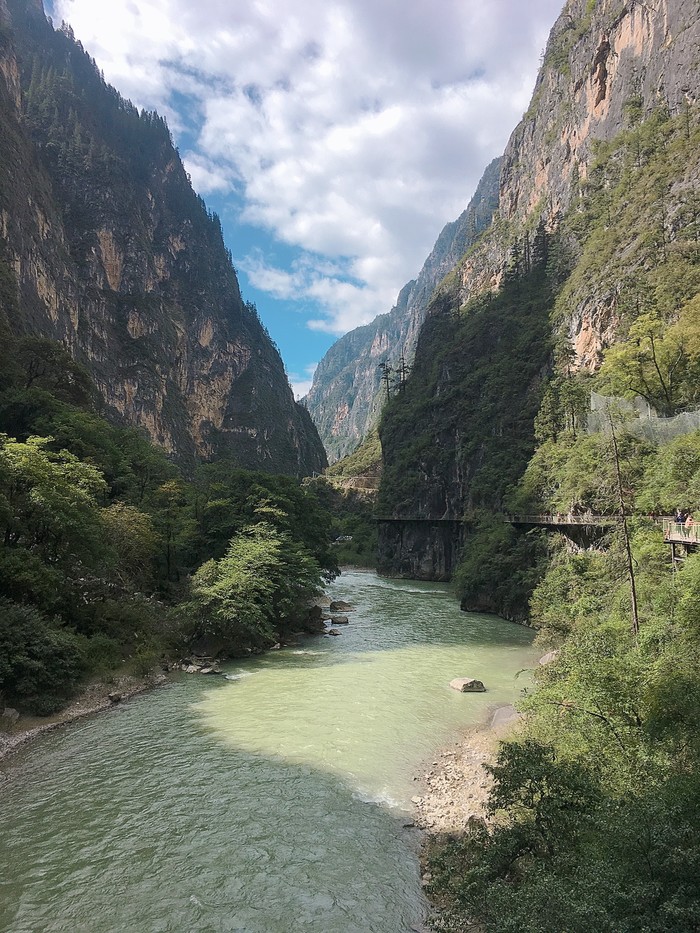 我们是在独克宗古城里面的咨询点咨询了去大峡谷的专车,费用是车费+门票+观光车(记得带学生证),虽然有点贵,但这个景点真的很值得去的,去到那里更多的感叹就是大自然的鬼斧神工和人类的巧夺天工,那里的山路很崎岖蜿蜒,车技不好的话,坐着都感觉胆战心惊  。观光车会载你到好几个不同的站点让你下来步行,在普达措看到的更多是动态的,那么大峡谷就是静态的。同时会感觉这里的人们好像住在世外桃源 一般,因为真的出不去  。(现在里面好像没有住人了吧,我都没见到有什么居民,都变得景点化了)
