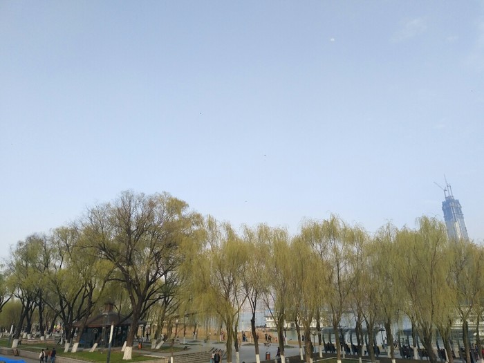 从江汉关博物馆出来步行就可以到达汉口江滩,江滩的人很多,太阳也出来了