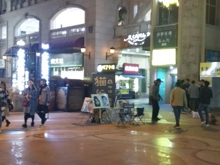 教堂的后面有一个画人像的摊子,武汉这种画人像的小摊子特别多