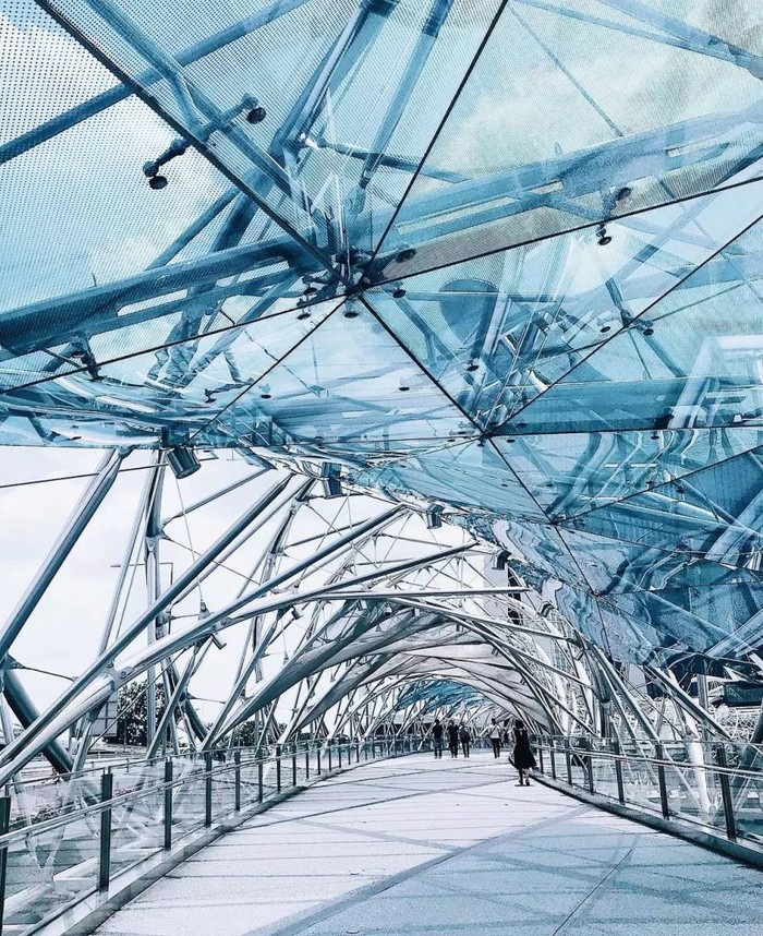 连接滨海湾与滨海中心的螺旋桥被誉为新加坡的又一座地标建筑,借用了DNA的造型,寓意是新加坡的生生不息和欣欣向荣。