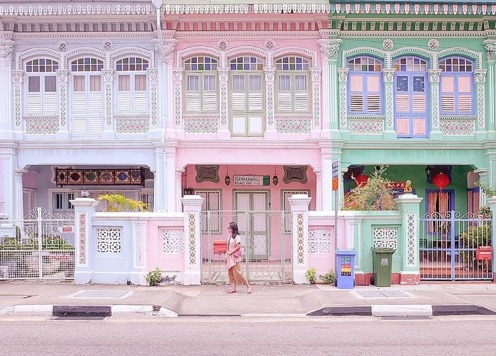 坤成路两边的建筑都非常的精致,融合了马来、中国与欧洲的建筑特色,而且每一栋都有不同的颜色和各自的特点。这里都是华人的洋房,每家门前都有个独立的小院落,比较私密。因为房子很多都有人住的,所以只能看外观。切勿擅闯民宅,影响到他人的生活。