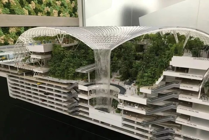 该项目由萨夫迪建筑事务所设计,耗资17亿新币(约85亿人民币),「星耀樟宜」坐落于新加坡樟宜机场第一航站楼前方,也是机场的核心位置。