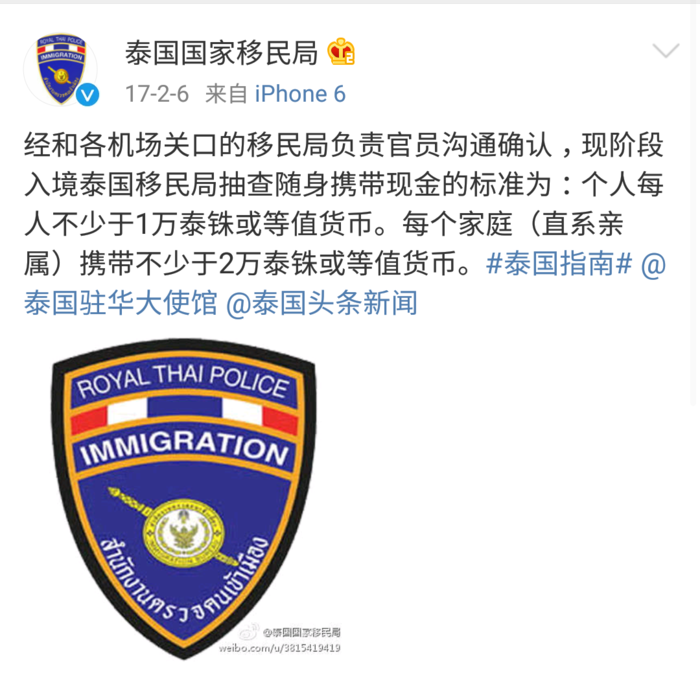 落地签现金抽查:2017年7月25日更新:入境游客身上须携带现金或等值外币10000泰铢(每人),20000泰铢(每户)。