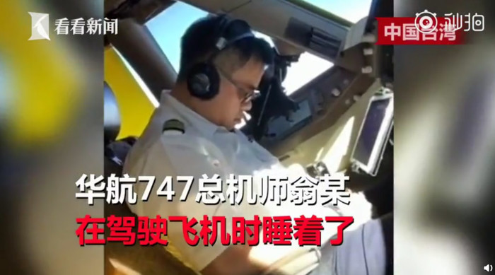 近日,一架台湾中华航空747客机的机长在飞行途中低头睡觉的视频在网络上曝光。