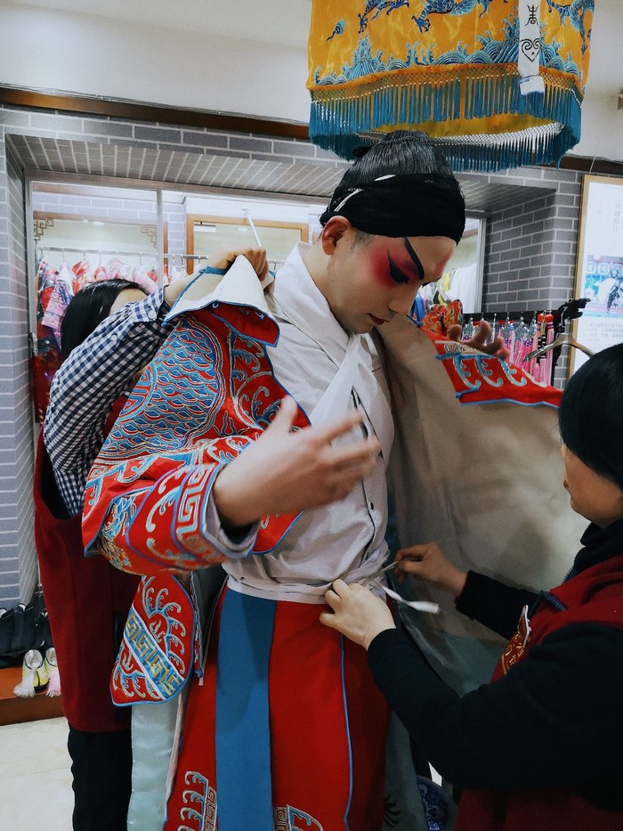 ![]() 强烈推介项目:蜀风雅苑去看川剧表演,在体验一次川剧妆容,演员真的很不容易呀。头饰戴久了头疼的很。我扮演的是穆桂英,他扮演的是杨宗保,一套拍摄下来660元,有点贵,胜在体验。照片什么的无所谓。