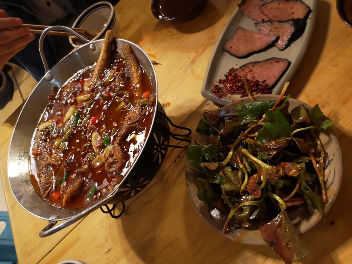 下完飞机后我们在智行软件上花了58元(平台一口价)的接机车到成都宽窄巷子附近酒店。安顿好后第一顿马上奔往大火锅啦,大龙火锅,就在宽窄巷子附近,推荐肥牛,不要大块的牛肉太硬了,店里还有脑花,讲实在我咬了一口马上吐了,作为一个南方孩子接受不到。但火锅胜在牛油,很香,味道还不错,价格略贵,但是本地人推荐这个,我们也是瞎问的旅馆老板。人均100元。