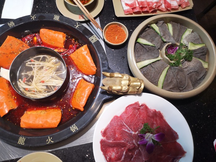 ![]() 下完飞机后我们在智行软件上花了58元(平台一口价)的接机车到成都宽窄巷子附近酒店。安顿好后第一顿马上奔往大火锅啦,大龙火锅,就在宽窄巷子附近,推荐肥牛,不要大块的牛肉太硬了,店里还有脑花,讲实在我咬了一口马上吐了,作为一个南方孩子接受不到。但火锅胜在牛油,很香,味道还不错,价格略贵,但是本地人推荐这个,我们也是瞎问的旅馆老板。人均100元。