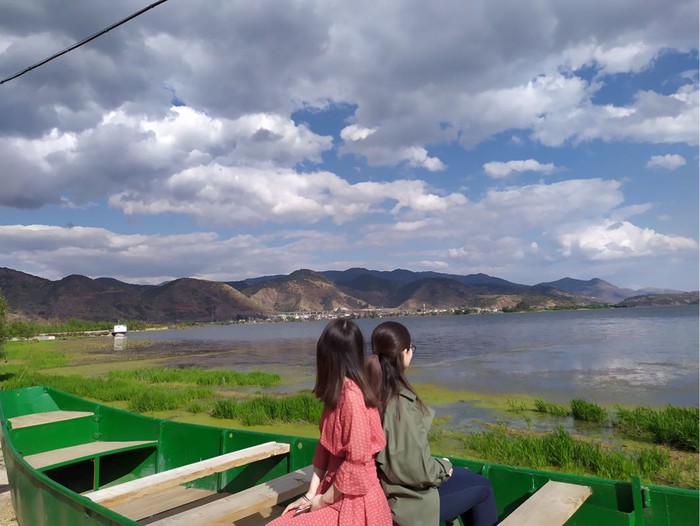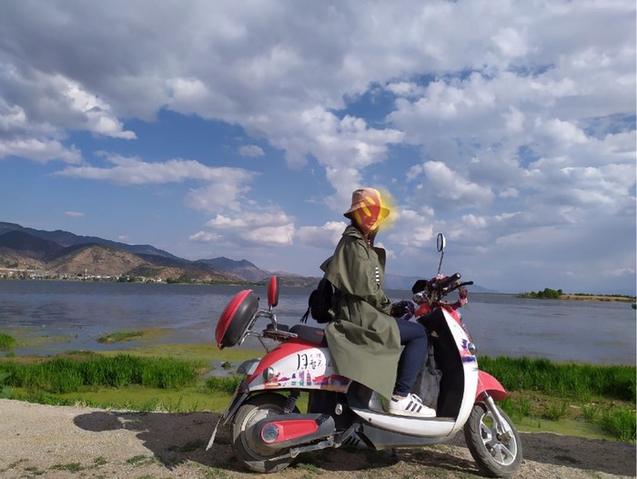 环海的小伙伴如果时间充足,还是去一趟双廊古镇吧,景色比喜洲前的景色我掐指一算,美上一万倍吧!听这俩姑娘的,我们是去古镇看日落的,一路双廊一路走,你的小电驴余额不足,请充值,半路冲吧,我们给小电驴的小黄冲了个半小时,停下来位置距离双廊17公里左右吧,景色的话你们自行安排,随意停就行了,但是保证比出来时美!