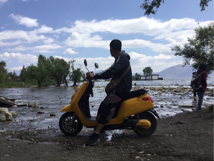 然后天就快黑了,回吧,屁颠屁颠的四个人还挺美就回去了,步行3公里到了补给站,看到我们失散两小时的兄弟,三个小电驴就开始卖命了,双廊到古镇要走50公里,那叫一个漫长,我们出发的时候天已经黑了,骑到20公里的时候,小白就拉了,我们土豪金小电驴就散发光芒了,拉着小白继续走,没多久剩下17公里眼看快到家了,另一个小黄也废了,完全把我们扔在了半路上!