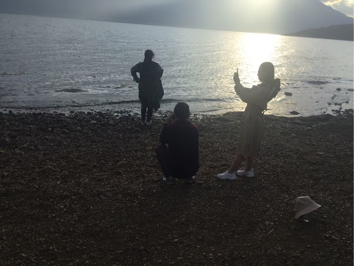 我们四个人就步行去了双廊,3公里,一路走,一路拍,一路聊,确实挺嗨的,挺美的,到了双廊真的是感觉爬上了珠峰一样,一路,2公里,1公里,500米,500米,500米,,,到了,看日落吧,你也得看运气呀,好不容易到了,日落并没给太大的面子,没看到传说的火烧云
