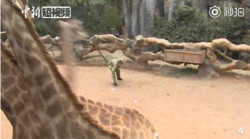 游客投掷人民币喂长颈鹿 工作人员紧急“救钱”抢回万元